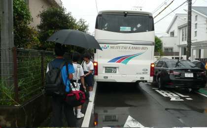 あいにくの雨でしたが、特別支援学級の生徒が元気に宿泊学習へ出発しました。
