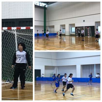 今日は,一宮市総合体育館において,秋季一宮市民ハンドボール大会が行われました。予選ブロックでは,2試合ともシーソーゲームとなりましたが,大事な局面でシュートが決まり2連勝しました。得失点差で予選ブロック2位で決勝トーナメント進出を決めました。
