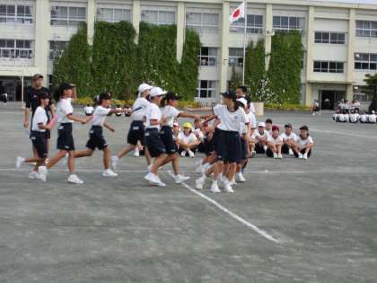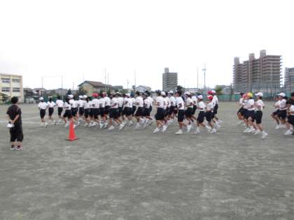 毎日、体育祭に向けた練習が行われています。今朝は、群団対抗リレーの練習が行われました。主に入退場やバトンパスの練習をしました。朝から、元気な掛け声が校庭に響き渡っていました。
