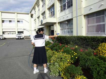 9月13日 委員会活動 公開日 2017/09/13 更新日 2017/09/13 学校生活 朝、園芸委員の生徒が、花壇の花に水をまきます。昼放課、保健委員の生徒が水質検査をします。毎日、それぞれの常時活動で責任を果たしています。
