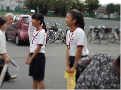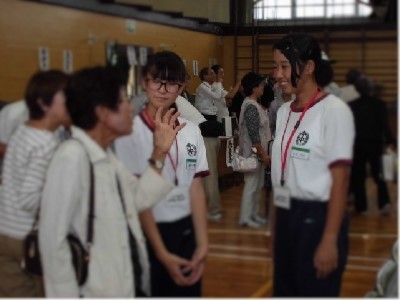台風が心配されましたが、無事に今伊勢町連区敬老会が開催されました。本校からは17名の生徒がボランティアとして、参加させていただきました。会場の準備からお年寄りの方の案内、抽選会のお手伝いなどに笑顔で一生懸命取り組みました。会場の皆さんからはとてもよくやってくれたと、お褒めの言葉をたくさんいただきました。生徒の中には、地域の方から、受験頑張ってねと励ましていただいたと喜んでいる生徒もいました。地域の方々とのあたたかな交流ができた1日でした。