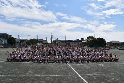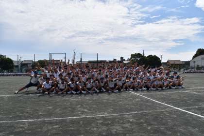 夏休みから3年生が考えてきた応援合戦。どの群団の演技も,見事な振り付けでした。力強いかけ声から見ている側が力をもらうことができました。素晴らしい応援,本当にありがとう。写真は1群,2群,3群の様子です。