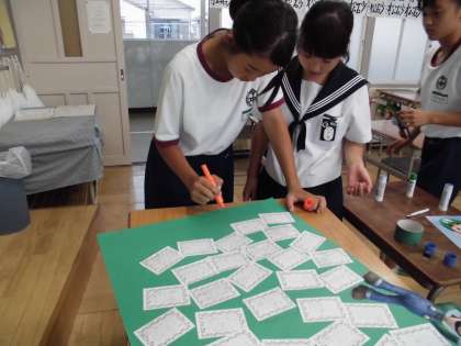 体育祭の群団応援合戦でお世話になった3年生に、後輩たちからのお礼のメッセージの掲示物を作成しました。約1か月、「優勝」というひとつの目標に向かい取り組む中で、3年生から全力で取り組むことのかっこよさ、振り付けが分からないときには丁寧に教えてるれる優しい心遣い、みんなで心を一つにして成し遂げたときの嬉しさなど、様々なことを学び、感じることができたようです。後輩たちがこうした思いを持てたのも、3年生のみなさんが夏休みから一生懸命に応援を考え、努力してくれたからだと思います。明日、3年生の教室には後輩たちからのメッセージが掲示してあります。ぜひ、3年生のみなさんは楽しみに登校してほしいと思います。