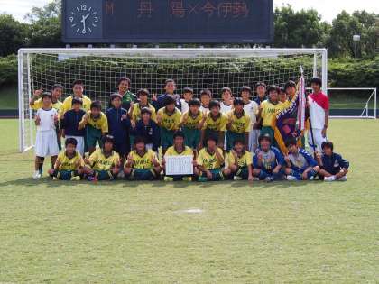 決勝戦の相手は,強豪校の丹陽中。前半3−0と今伊勢中がリードするものの,後半に追い上げられ,残り10分で3−2…。互いにチャンスとピンチを繰り返しながら試合終了のホイッスルを迎えました。ハラハラ・ドキドキの接戦を制し,見事に優勝することができました。