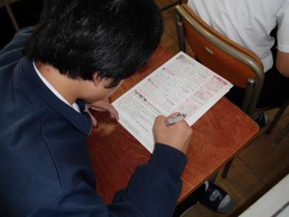 10月10日 授業風景 公開日 2017/10/10 更新日 2017/10/10 学校生活 今週の木曜からテストが始まります。3年生は当然のことながら集中して授業に臨んでいました。朝の集会で校長先生からも,テスト週間は「静」の時間という話がありました。進路の実現に向けて,十分に力を発揮してほしいと思います。