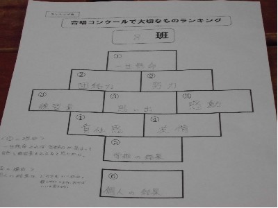 10月17日 2年生道徳 「合唱コンクールのダイヤモンドランキング」