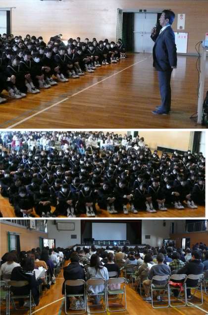 11月5日 3年生進路説明会 公開日 2017/11/05 更新日 2017/11/05 学校生活 進路説明会を行いました。 進路指導主事より、「もうすでに、第一志望の進路を、自分なりに決めている生徒」、「家庭で保護者の方々と相談をしている生徒」の挙手を求められました。とても多くの生徒が挙手をし、自分の生き方をしっかりとみつめている生徒の多さをうれしく思いました。生徒の皆さんの希望が実現できるように、職員一同で支援していきたく思っています。