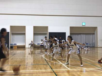 総合体育館でバスケットボールの大会が行われました。相手校は奥中学校。序盤から相手センターにプレッシャーをかけてボールを奪い,得点につなげるプレーが何度も見られ,ペースを握ることができました。途中得点が止まる場面もありましたが,攻守とも集中を切らさず勝ちきることができ,一人一人の成長を感じ取れる試合でした。