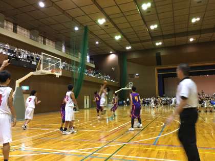 木曽川体育館でバスケットボール総合体育大会の二日目が行われました。浅井中学校との試合に、79−44で勝利を収めることができました。