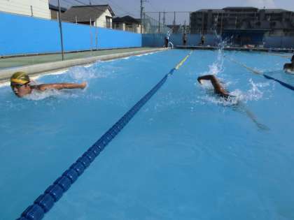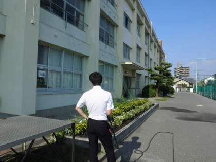最高気温が39度になるという予想が出されていたため、本日はグラウンドではほとんど部活動が中止となり、外部活は水泳部のみが活動していました。市大会や西尾張大会に出場する屋内の部活動も活動していましたが、活動時間を1時間として生徒は早めに下校しました。この暑さのため、花壇の花もぐったりしていたので、担当の先生がたっぷりと水を与えていました。