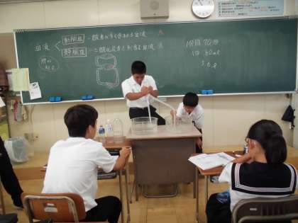7月19日 2年生 理科の授業 公開日 2018/07/19 更新日 2018/07/19 学校生活 2年生の理科では、体の働きについて学んでいます。今日は、心臓が血液を送る働きをポンプを使って具体的に学んでいました。
