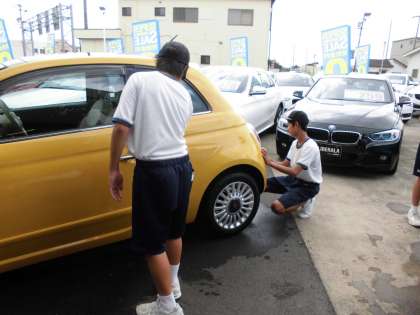 職場体験の様子です。名鉄一宮では車いすの方の乗車のお手伝いをしていました。福祉移設では利用者の方とともにストレッチ運動をしています。車販売のお店ではピカピカに車を磨き上げていました。体験内容は様々ですが、どの子も生き生きと活動を行っています。