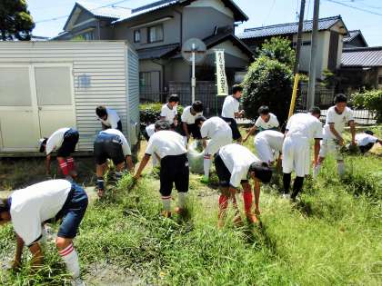 サッカー部が体育館裏の草取りを行ってくれました。夏休みは掃除がないため,こうした生徒たちの自主的な活動のおかげで学校は清潔な環境が保たれています。