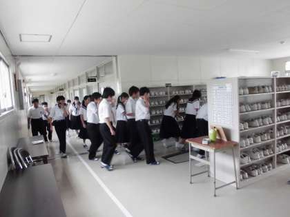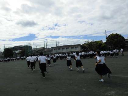 始業式に続いて避難訓練が行われました。9月1日の防災の日を踏まえて、地震とそれに伴う火災が発生した想定で避難をしました。生徒は落ち着いて避難することができましたが、実際に起きた時も今日のような落ち着いた行動をとることで、自分の命は自分で守るように心掛けてほしいと思います。
