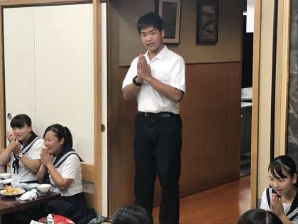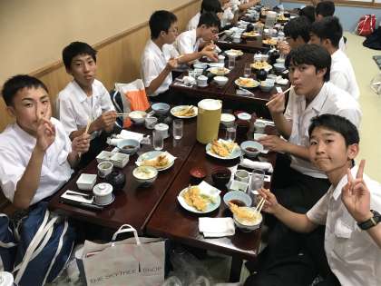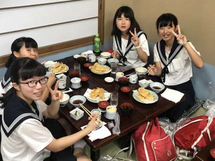 6組夕食の様子です。天ぷらに舌鼓をうっています。