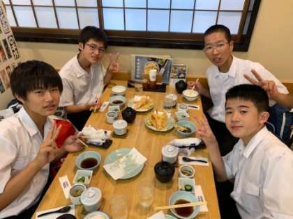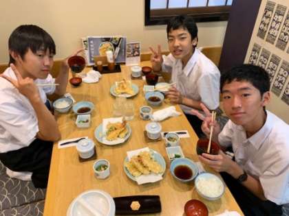 2組は夕食を食べ始めました。 天ぷら美味しいです!