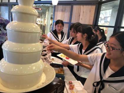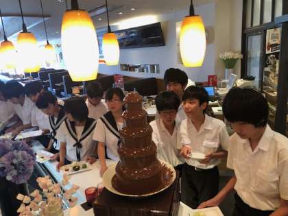 1組、昼食でのデザートタイムです。甘いものは別腹ですね。