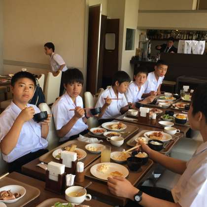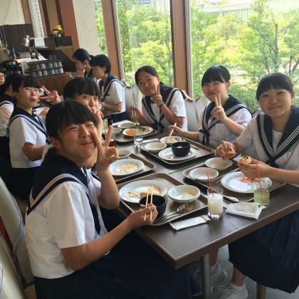 4、5組お昼ご飯を食べています。