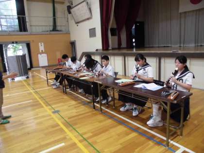 7月2日 10組 音楽の授業 公開日 2019/07/02 更新日 2019/07/02 学校生活 10組では来週にある小中交流会に向けて、リコーダー練習をしていました。屋内運動場で練習をすることで、本番に備えていました。