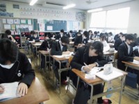 何をしているのかのぞくと、テスト中につかった消しゴムのごみを集めて、捨てに来ていたのです。中学生のころ、何気なく床に払っていた自分のことを思い出し、何だか恥ずかしくなりました。また、テストのことで頭がいっぱいであろうときでも、周りのことを考えて行動できる今中生を大変誇らしく思いました。