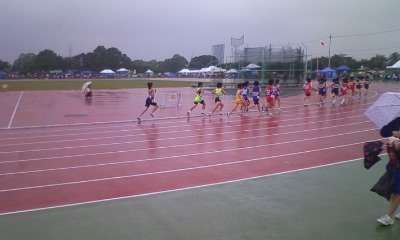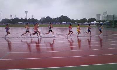 雨が激しく降る中、長距離が行われています。800m、1500mでは県大会出場が決まりました。