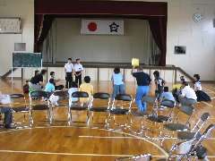 近隣の小学生の皆さんをお招きして、屋内運動場で交流会が開かれました。
