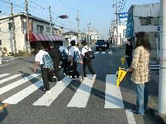PTA学級委員の皆さんによる、交通安全指導及びあいさつ運動が、町内の5か所で行われました。毎月10日に最も近い日に行っています。生徒の皆さんとのコミュニケーションもずいぶんととれてきたようで、以前よりも元気なあいさつの声が聞こえてきました。特に石刀駅前の踏切では、出会う人全員が元気よくあいさつをしてくれ、とてもよい気分になりました。元気なあいさつのできる今中生を目指しましょう。