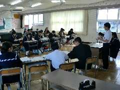 学校では、来週に控えたディベート大会に備え、三校による合同練習会が開かれています。本番さながらにステージを作り、肯定側否定側に分かれて意見を戦わせています。大会は来週の23日、奥中学校で開かれます。