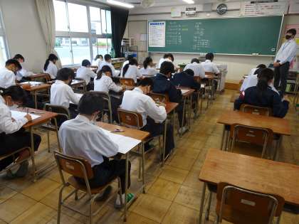 10月17日 中間テスト1日目(1年生) 公開日 2022/10/17 更新日 2022/10/17 1年生 今日は英語、理科、国語のテストでした。 どのクラスも時間いっぱい問題を解く生徒の姿がありました。 あと一日頑張ってくださいね。