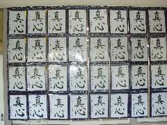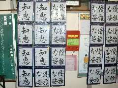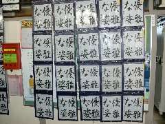 保健室の前、会議室の前に書写作品が掲示されています。これは、9月ごろに各学級で行われた、『尾書研 書写コンクール』の優秀作品です。本校生徒の作品はもちろんですが、他校の生徒さんの作品も掲示されています。現在本校は、学校公開週間中です。遠慮なく来校いただき、この作品もごらんいただきたいと思います。