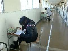 今日のチャレンジ学習は、2・3年生です。2年生は、課題プリントの点検と、その解説が行われています。社会科の教室では、歴史的事象について、内容とその事象が起こった場所の確認が行われていました。廊下では、担任の先生による、課題点検も行われていました。