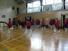 部活動は、今日も元気に行われています。体育館では、卓球部とバスケットボール部が、声を掛け合いながら、切磋琢磨しています。