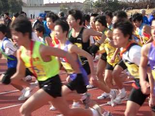 尾張駅伝競走大会が、千秋の総合運動場で行われました。風もなく日差しも柔らかい絶好のコンディションでした。この大会は、他の大会とは少し変わっていて、一般・高校生の部と中学男子の部、中学女子の部が、ほぼ同時にスタートします。そのため、最初のうちは順位が分かるのですが、後半になってくると周回遅れなのか先頭なのかの判断も難しいくらいになってきます。