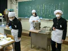 給食準備の様子です。4限が終了すると、担任の先生引率の下更衣してコンテナ室へ向かいます。そこで、手を消毒し、自分の学級の食器等をもらって帰ります。教室では、クラスによってまちまちですが、配膳台を教室の中央に配置したり、前のほうに配置したりして手分けして配膳を行います。今日の献立は、ご飯と、煮味噌、さわらの照り焼きでした。赤味噌文化を確認する日ですね。最近の給食は、和食が多くてうれしく思っていますが、それは齢を重ねたからでしょうか。