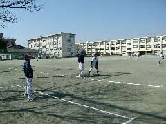 試合が始まりました。「体力が残っているうちに勝負だ。」おやじチームのベンチの声です。その声の通りで、1回の裏に2点を先制。しかし、その裏からは、ランナーが出るものの、生徒の皆さんによる好プレー、おやじの無謀なランニング等で0点が続いています。
