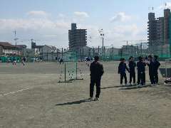 生徒の皆さんは、春休み中の休日にもかかわらず、今日も部活動に汗を流しています。学校にいなくとも、試合に出かけている部活動もあります。運動場では、野球部がOB戦を行います。現在はウオームアップ中です。卒業生VS現役生。どんな試合展開になるのでしょうか。