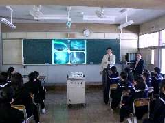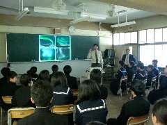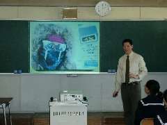 今日は、アラスカの紹介をしていただきました。1年生の授業ではありますが、分かりそうなところは英語で、難しい単語は日本語でと、上手に使い分けての説明です。アラスカのオーロラの写真では、あまりの美しさに教室から歓声が上がりました。行ってみたいなあという気持ちにさせられます。しかしその後の写真が、アラスカの気温です。何度だったと思いますか?マイナス43度です。さすがに、行きたくないの声が上がっていました。