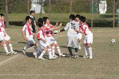サッカー部は、光明寺球技場で戦いました。前半に1点を取られ、後半にも追加点を取られ、一時は0−2と劣勢でした。しかし、驚異的な粘りを見せ、2−2の同点で終了しました。PK戦を戦い、見事に2回戦へ駒を進めました。