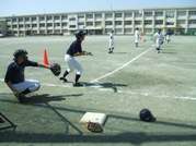 午後からは、野球部が部活動を行っています。基本に忠実なプレーをしようと繰り返し練習に励んでいます。写真は、バント練習の様子です。4ヶ所で効率よくバント練習に取り組んでいます。気温が高くなっていますが、集中して練習に取り組もうと声を掛け合いながら練習に取り組んでいます。