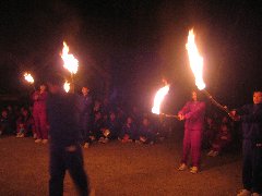 キャンプの写真が出来上がりました。トワリングの様子も、上手に写っていましたので、再度アップしました。練習を繰り返した甲斐があって、写真のように見事な軌跡を描くことができました。ファイヤーの井桁も、勢いよく燃えており、会が盛り上がったことが分かりますね。最後の写真は、全員の心がまとまった井桁から、その友情の証が分火された様子です。
