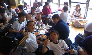 そして楽しみにしていたお弁当の時間です。家族の皆さんの温かい愛情を感じながらいただきました。信じられないことですが、砂の造形は実施できそうだということです。雲行きは少々怪しそうですが、やれたら本当にいいですね。