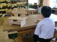木工室では、本箱やいすを作っていました。もう仕上げの段階に入っており、とても丁寧にやすりがけをしていて驚きました。