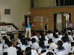 4限は、3年生を対象とした薬物乱用防止集会が開かれました。この会は、地域の保護司の皆様の主催で、保健所から講師の先生をお招きしてお話を伺いました。