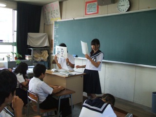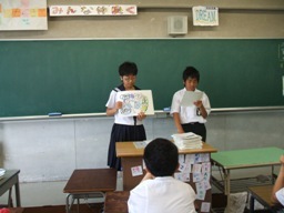 今日の朝のSTの時間に、各学級で「熱中症対策をマスターしよう!」をテーマに保健委員会ミニ講座を実施しました。保健委員のみなさんが、事前に準備した紙芝居をもとに、熱中症の症状や対応策、さらに予防方法をわかりやすく説明していました。「気温が高い、湿度が高い、風がない」日に熱中症にかかりやすくなることやスポーツドリンクや薄い塩水をとり、涼しい場所で体を休めるなど、熱中症にかかった場合の具体的な手当の方法の説明がありました。さらに、十分な睡眠と栄養補給など、予防策についても説明がありました。まもなく、3年生のみなさんにとって最後になる部活動の大会が始まります。ベストコンディションで大会で力を発揮するためにも日頃から健康管理に気をつけてほしいと思います。学校では、部活動の活動時間中に、一斉休憩・給水の時間を設けて安全に活動できるように指導しています。暑い日が続きますが、熱中症対策をマスターして、元気に生活を送ってほしいと思います。