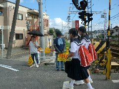 「朝曇りのかんかん照り」とはよく言ったもので、朝のうち曇っていて涼しく感じられた交通立番も、すぐに強い日差しにやられ、学級委員のお母さん方も汗だくになってしまいました。こんな暑い日も、生徒の皆さんの元気なあいさつがあると、一服の清涼剤になるのですが・・・まだまだ、あいさつの熱さに差がありますね。欲張りなようですが、100%のあいさつを求めています!