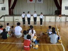 両小学校のお友達を招いての、小中交流会が本校で開かれました。プログラムから司会まで全て手作りのとても温かい交流会でした。まずは、キャンプや宿泊学習の思い出を発表しました。続いて、トーンチャイムを使って「きらきら星」「七夕様」「喜びの歌」を演奏しました。やわらかい音色に、全員が癒されました。そして、楽しい工作の時間です。今日は、紙飛行機を作りました。切るのは難しいので、事前に中学生が切っておいたものを、木工用ボンドで張り合わせて作りました。乾くまでの時間は、すでに作ってあった紙飛行機を、屋内運動場で飛ばして遊びました。投げ方が上手だと、とてもよく飛びます。みんな大喜びでした。