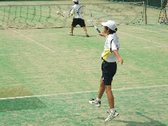 トーナメント戦を勝ちあがり、決勝戦を迎えました。テニスは、3ペアによる戦いで、先に2つのペアが勝ったチームの勝利です。決勝戦は、まさに伯仲した戦いでした。1勝1敗で、最終のペア同士の戦いです。7セットマッチのゲームは、3対3でファイナルセットを迎えました。この一本で決まるという最後に、勝利の女神は、今中に微笑みました。両校の健闘をたたえたいと思います。