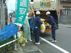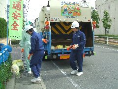 清掃車に実際に乗せていただき、作業を体験しました。今日はくもりですし、短い時間の体験でしたが、暑く重く辛いものがありました。係りの方のお話では、これでも今日は涼しくやりやすい日だったそうです。カッパはとても暑く重くなるので、雨の日の作業が一番辛いのだそうです。作業の喜びは、一般の方から「ありがとうございます」と声をかけられることだそうです。私たちも気にしたいと思います。