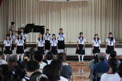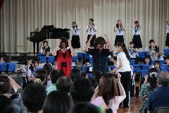 合唱部は、先のコンクールでの課題曲・自由曲に2曲を加え、計4曲の発表となりました。また、ブラスバンドは、7曲の発表でしたが、その半ばでは、恒例となっています新任の先生と1年生によるパフォーマンスで、会場は大盛り上がりとなりました。