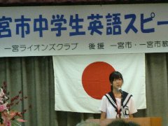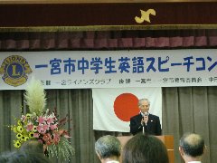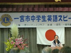 今回のコンテストは、一宮ライオンズクラブ結成55周年記念行事として開催されました。参加した生徒の皆さんは、夏休み中にもかかわらず、何度も学校に足を運び、英語科の先生方の指導を受けてコンテストに臨みました。ただ英語の文を読み上げるのではなく、身振り手振りを交え、表情豊かに話しかけるなど、コミュニケーション能力の高さがうかがえるコンテストでした。参加してくれたMさんTさん、お疲れ様でした。